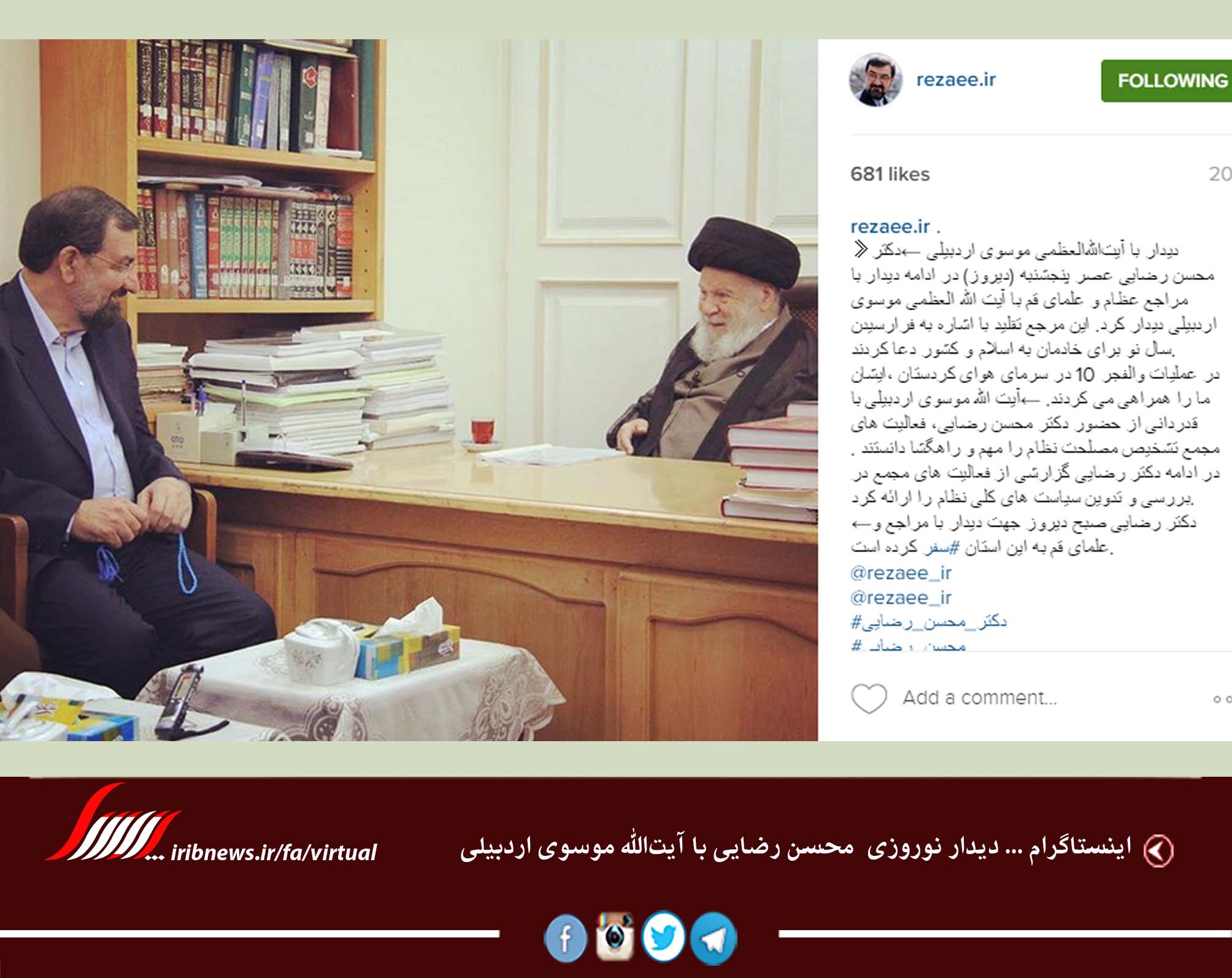 اینستاگرام ... دیدار نوروزی محسن رضایی با آیتالله موسوی اردبیلی