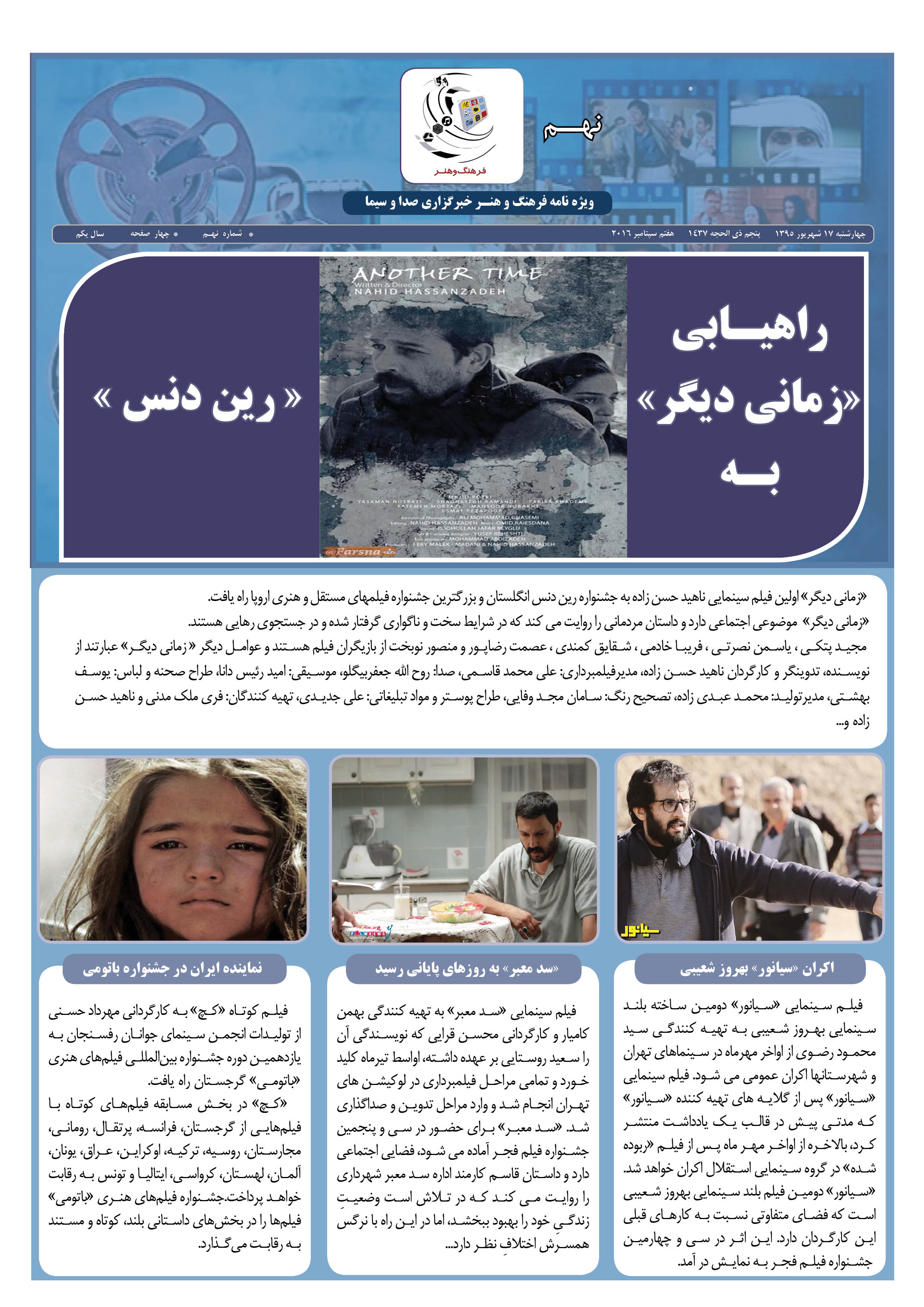 دانلود نسخه پی دی اف شماره نهم ویژه نامه فرهنگ و هنر