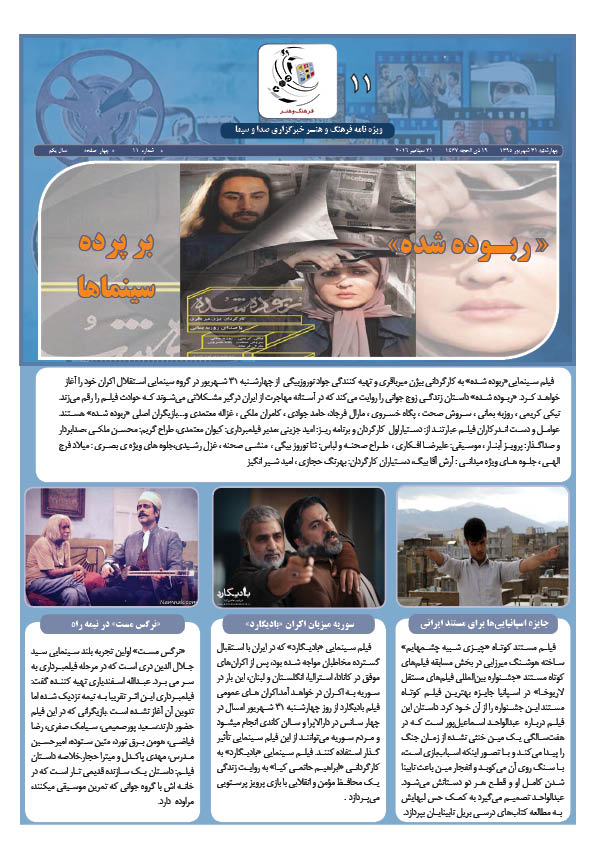 شماره یازدهم ویژه نامه فرهنگ و هنر با صفحات سینما، تئاتر ـ تلویزیون، موسیقی ـ کتاب و عکس منتشر شد.