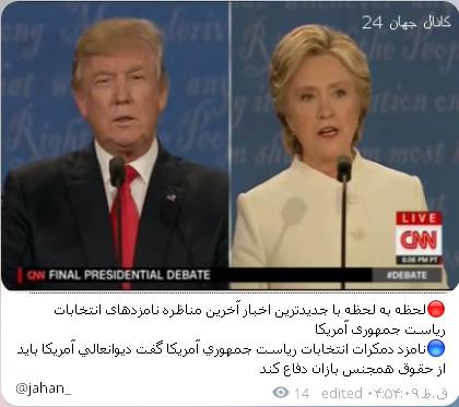 به گزارش سرویس بین الملل خبرگزاری صدا و سیما ، مروری سریع بر مهمترین محورهای مطرح شده در مناظره انتخاباتی ریاست جمهوری در امریکا میان نامزدهای احزاب دمکرات و جمهوری خواه .
