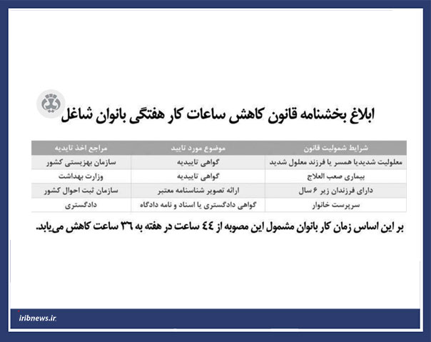 * ابلاغ بخشنامه قانون کاهش ساعت کار هفتگی بانوان شاغل