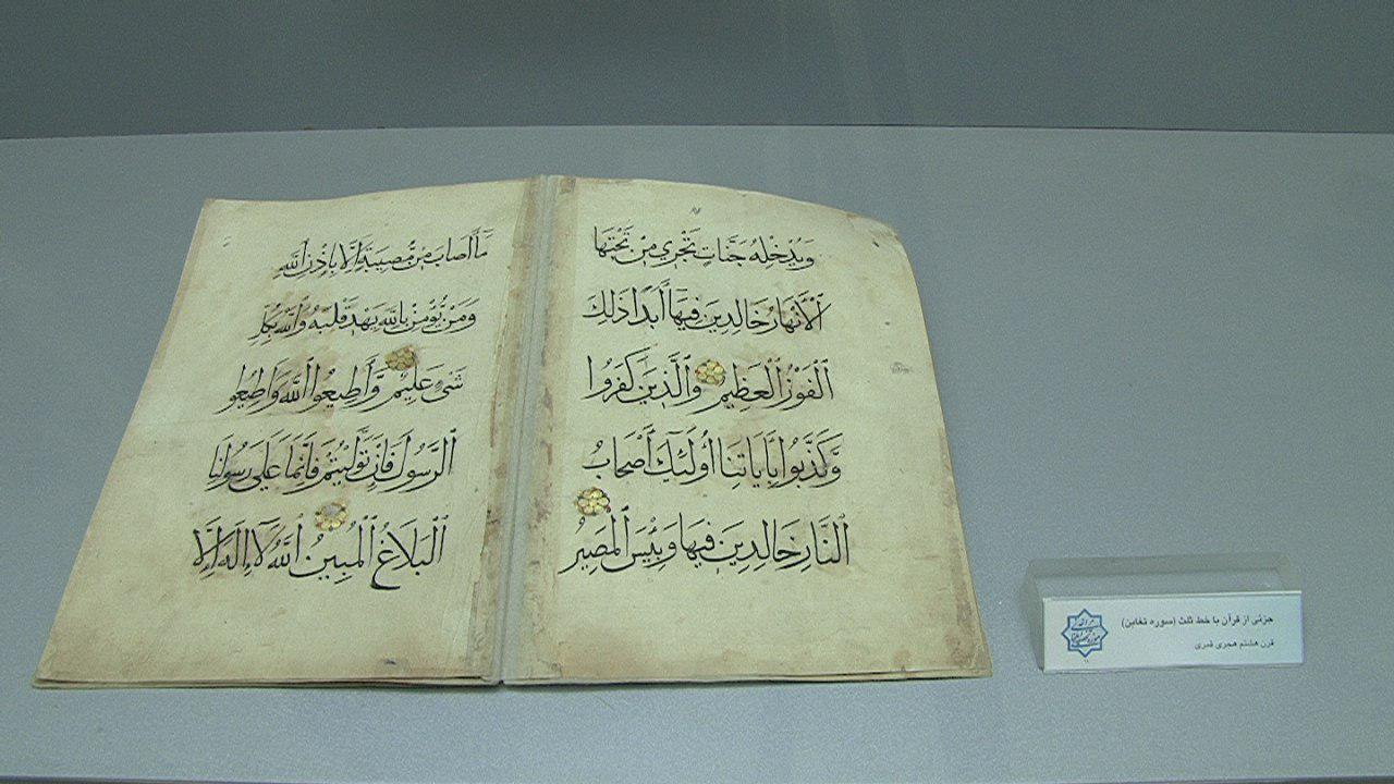 وی گفت : در بخش کتابت نیز صفحاتی از قرآن های نفیس به خط یاقوت مستعصمی به نمایش در آمده که برای اولین بار در این قرآن ها ترجمه فارسی زیر آیات نگاشته شده است.