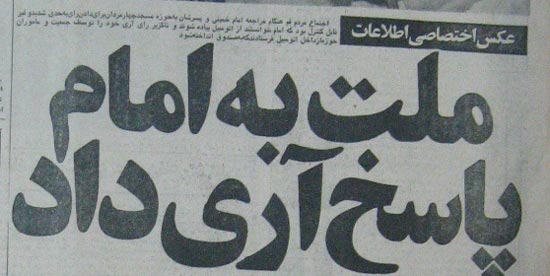نتیجه این همه‌پرسی که به فرمان امام خمینی برگزار گردید به این شرح اعلام شد: شرکت‌کنندگان : ۲۰ میلیون و ۲۸۸ هزار و ۲۱ نفر، آرای مثبت: 20 میلیون و ۱۴۷ هزار و ۵۵ رأی و آرای منفی  ۱۴۰ هزار و ۹۶۶ رأی.