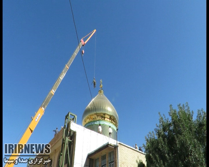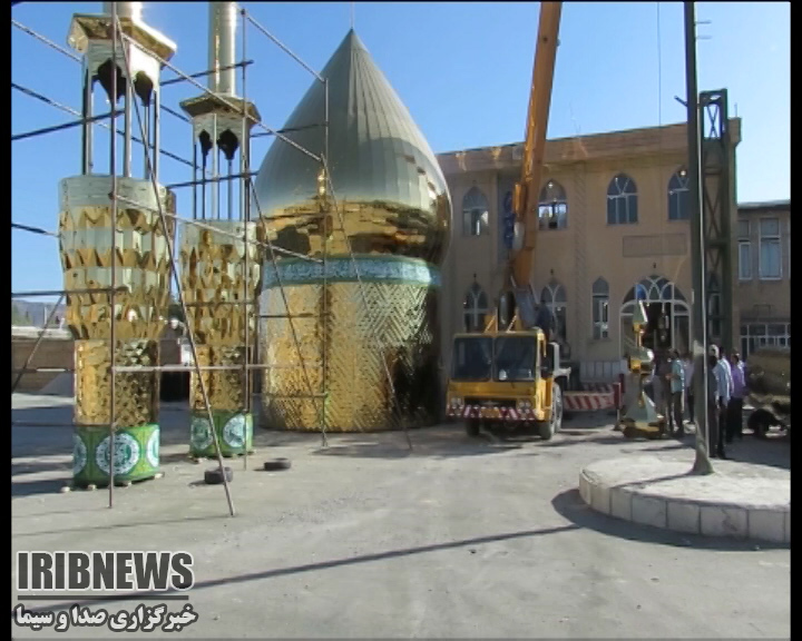 نصب گنبد و گلدسته های مسجد امام حسین (ع) شهر گندمان