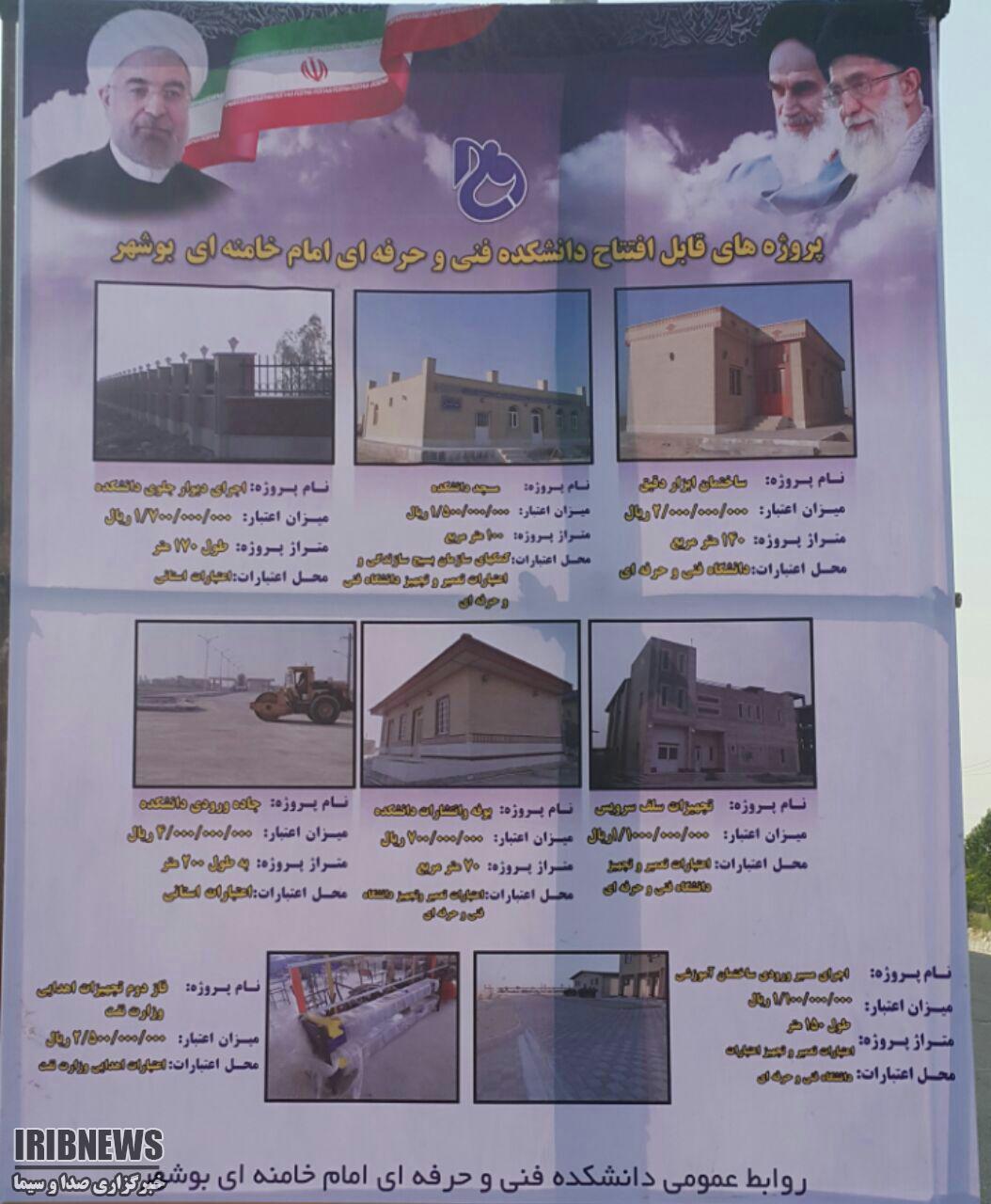 در دانشکده فنیوحرفهای امام خامنهای بندر بوشهر هزار و 284 دانشجو در 9 رشته کاردانی و 2 رشته کارشناسی تحصیل میکنند.