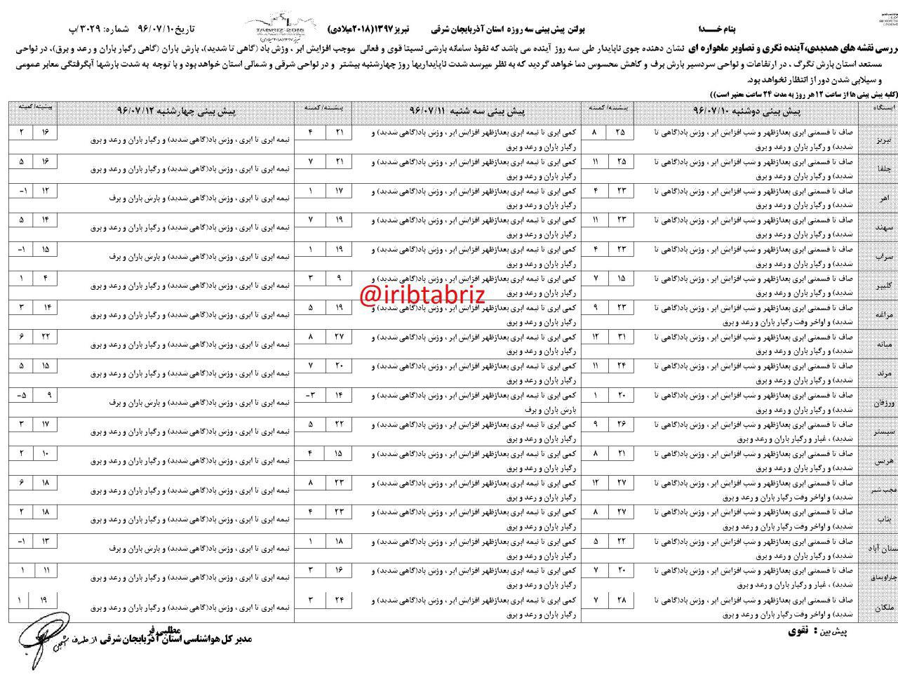 هشداربه کشاورزان آذربایجان شرقی درخصوص سرمای زودرس