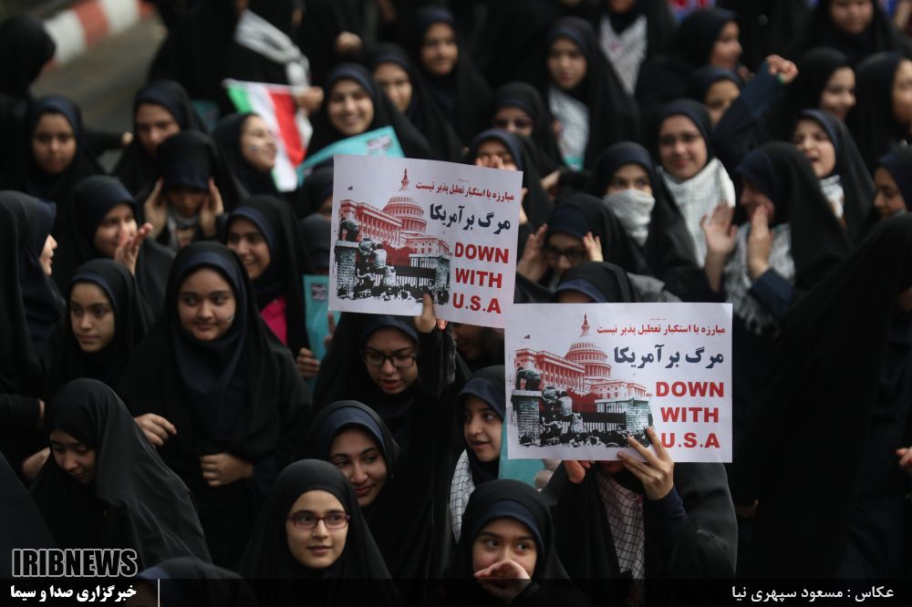 نمایی از تجمع و حضور پرشور مردم استان در روز مبارزه با استکبار جهانی و روز دانش آموز