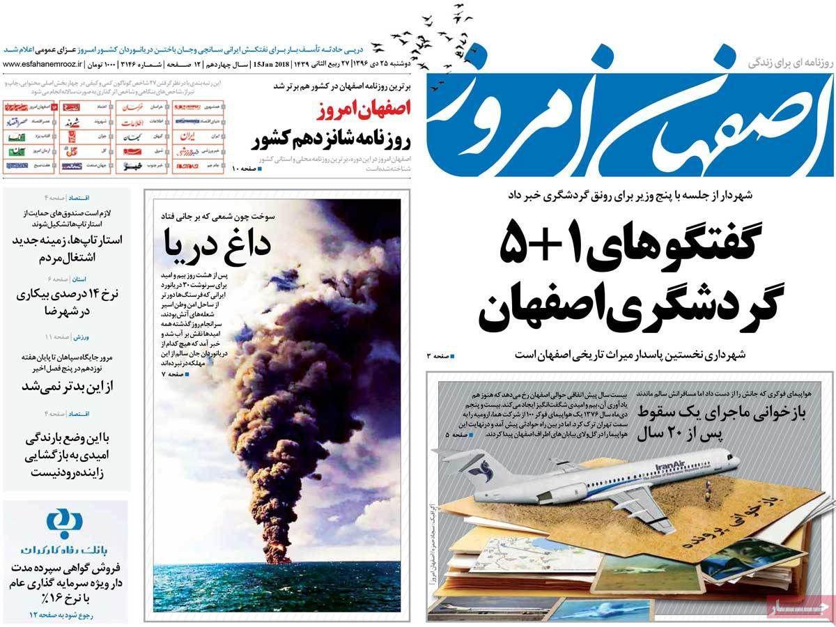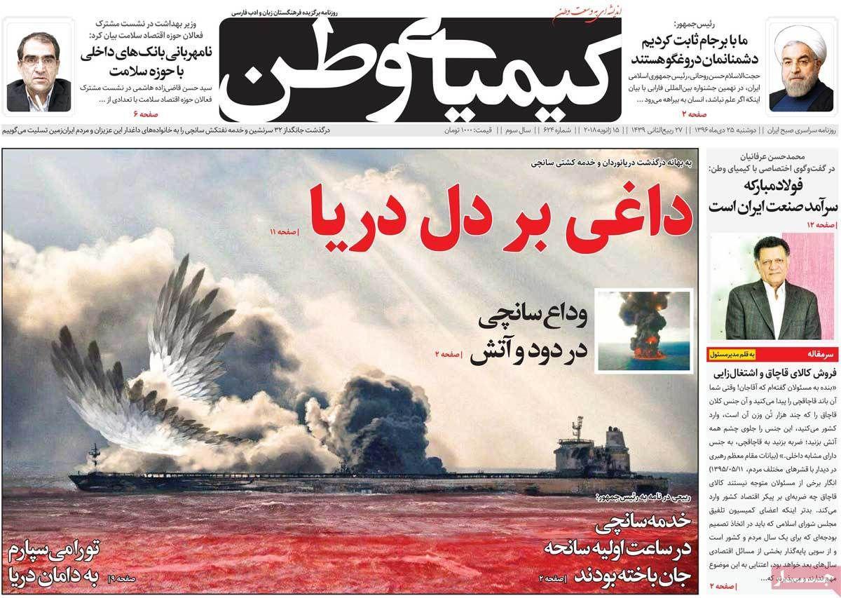 به گزارش خبرگزاری صداوسیما،مرکز اصفهان ؛ امروز روزنامه ها اصفهان به سانحه سانچی پرداختند و با زدن تیتر هامثل داغ دریا،آب است  و آتش و غم ،پایان امید و داغی بر دل دریا ،از این حادثه غم انگیز گزارش دادند.