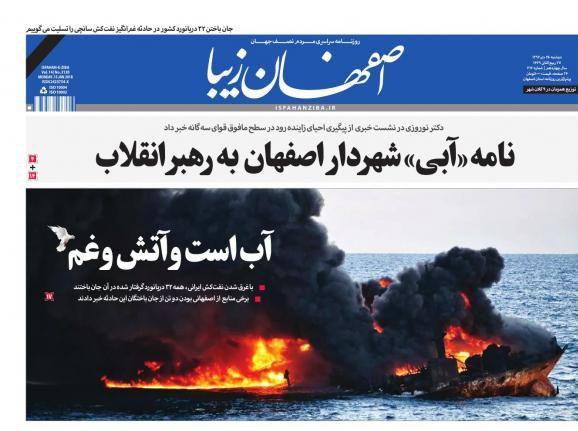 روزنامه های اصفهان امروز با تیترهای غم انگیز یا سیاه کردن لوگوی خود با خانواده های واقعه سانچی ابراز همدردی کردند.