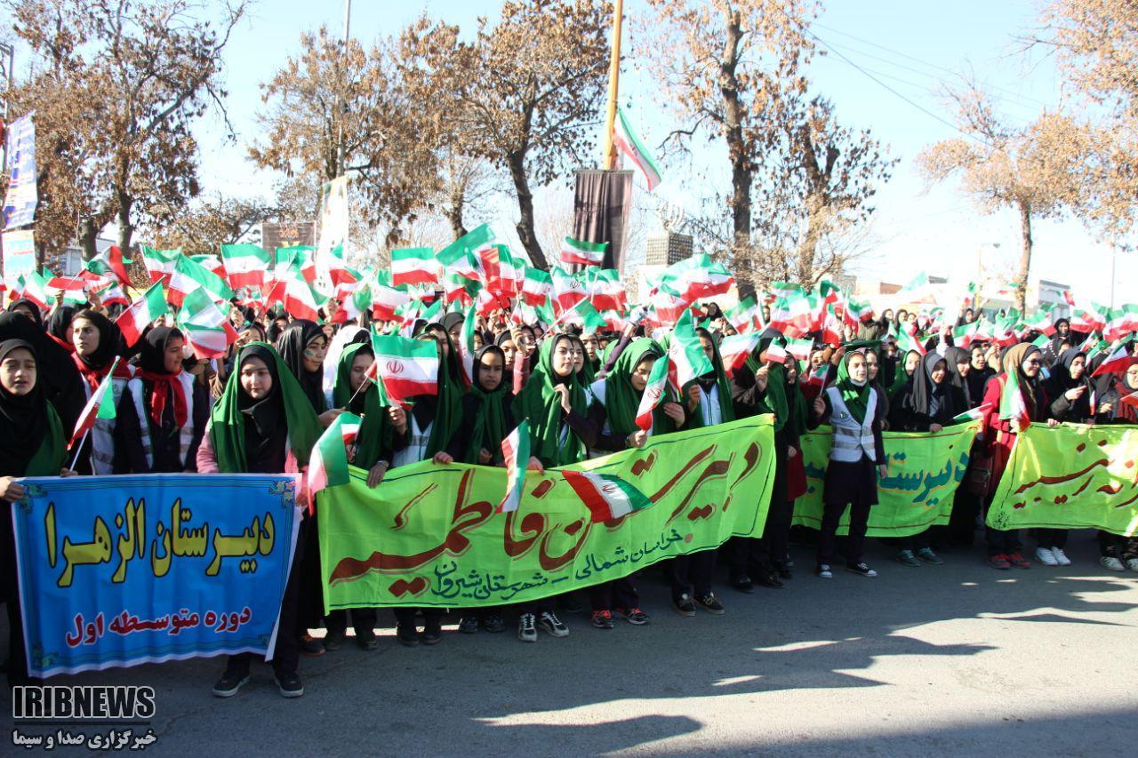 در شیروان این مراسم با حضو.ر باشکوه دانش آموزان، مردم و مسئولان در مقابل مسجد جامع برگزار شد.