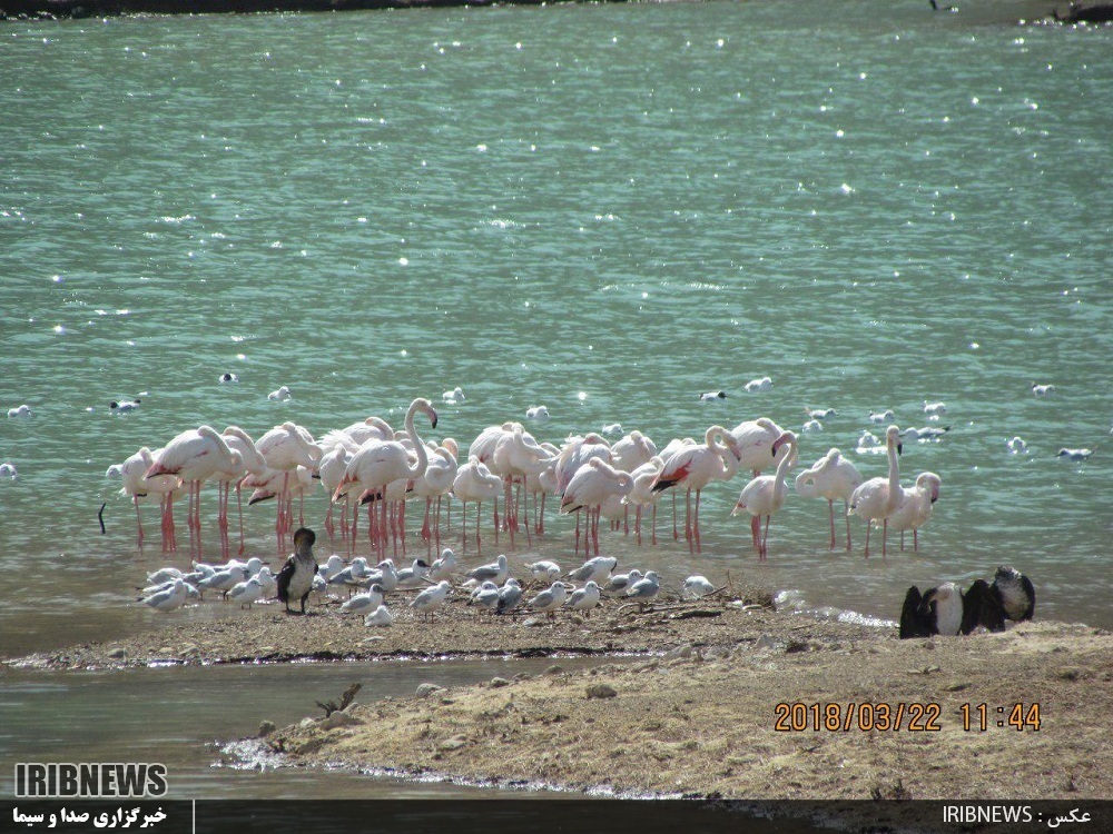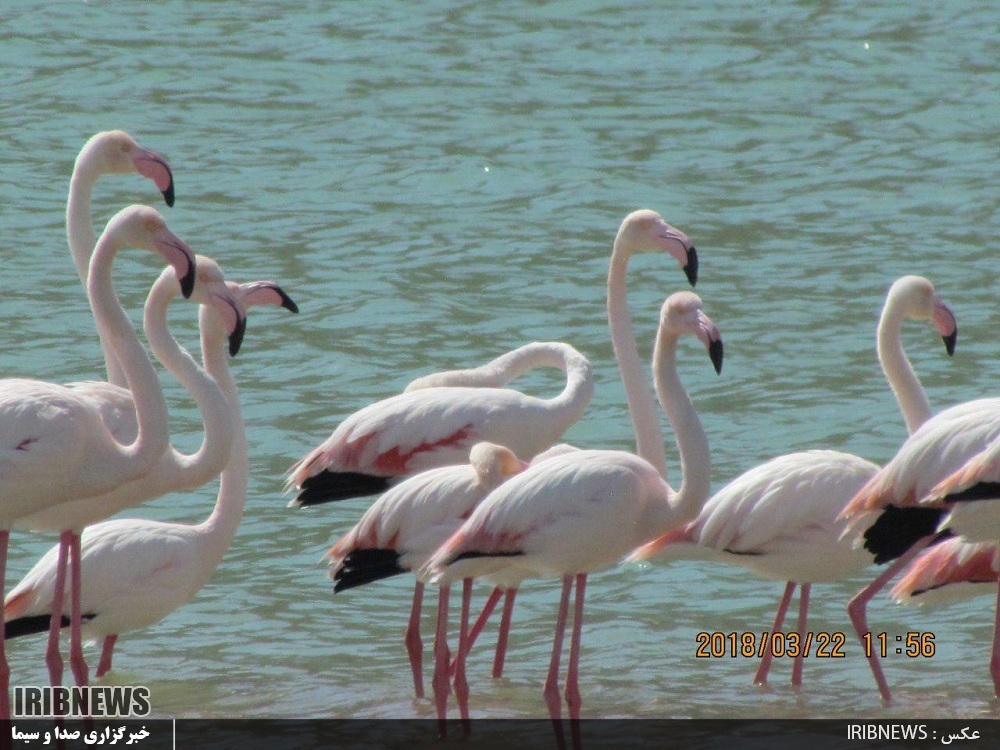 فلامینگوهای مهاجر به دریاچه سد شهید شاهچراغی دامغان آمدند.
