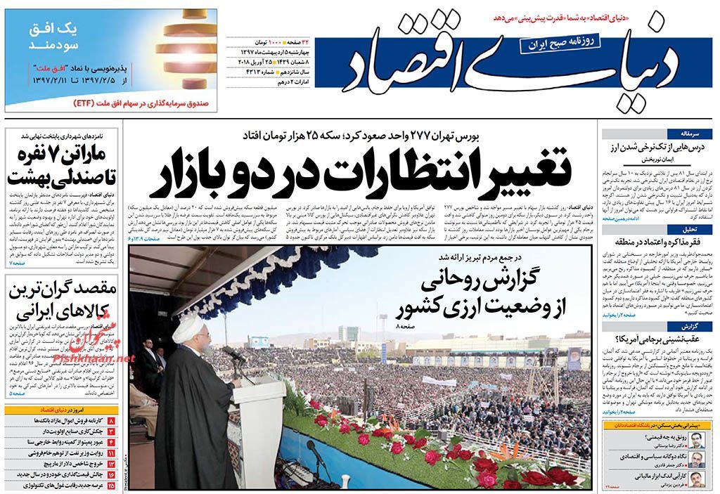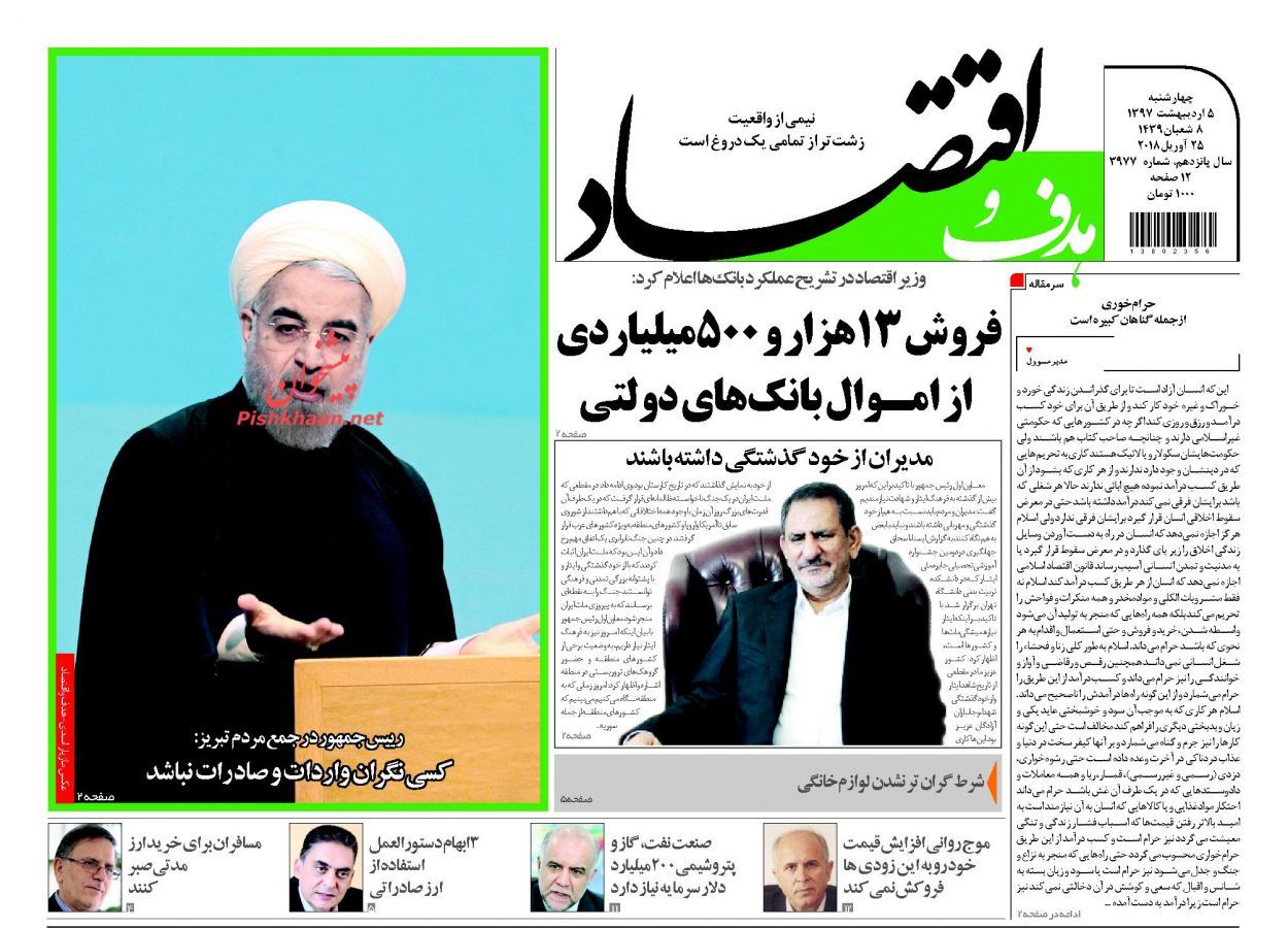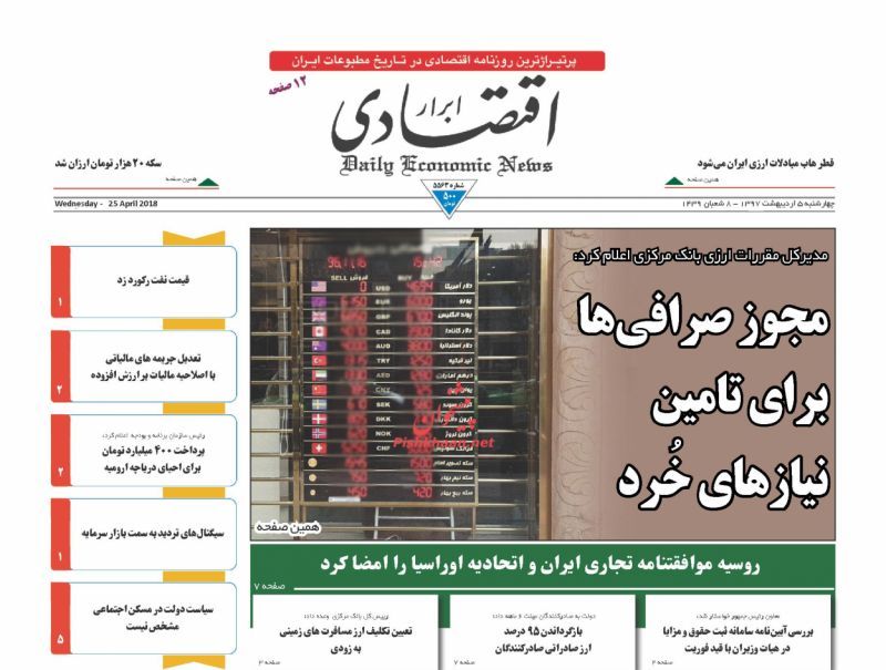 در پیشخوان امروز ، صفحه نخست و تیتر یک برخی روزنامه های اقتصادی چهارشنبه 5اردیبهشت 1397 را مشاهده می کنید.