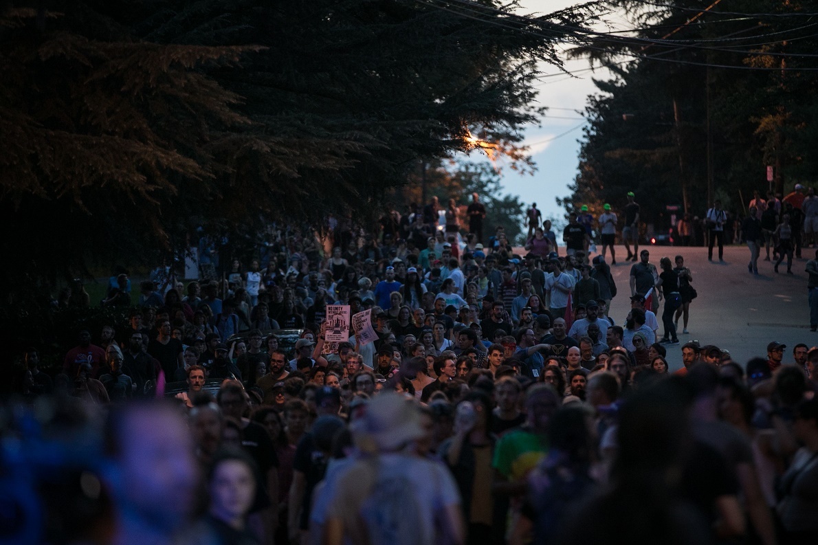معترضان شعارهایی از قبیل ”پلیس و کلان همدست هستند“ سر می دادند.( کو کلاکس کلان Ku Klux Klanیا ‹KKK› نام سه جنبش سری در برهه های مختلف تاریخ آمریکا از گذشته تا امروز است که همگی طرفدار برتری نژاد سفید، یهودستیزی، نژادگرایی، ضدیت با آئین کاتولیک، بومی‌گرایی و نفرت نژادی بوده اند.) انتقاد معترضان هم از پلیس و هم دانشگاه ویرجینیا مؤید نفرتی است که هنوز با گذشت یک سال از تظاهرات گروههای نئونازی در محوطه این دانشگاه وجود دارد. در تظاهرات سال گذشته, گروههای نئونازی در حالی که مشعل به دست داشتند, شعارهای یهودستیزانه سر دادند و معترضان چپگرا را کتک زدند.