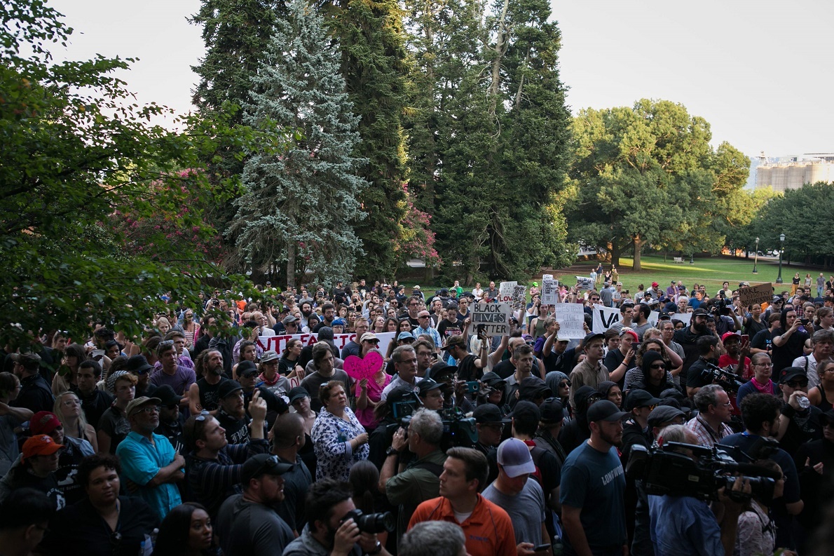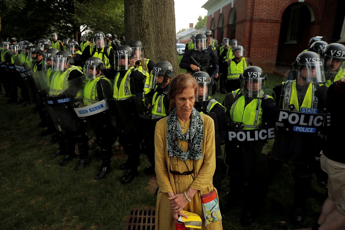 دانشجویان شرکت کننده در تظاهرات شارلوتزویل از اینکه پلیس بر خلاف سال گذشته که راستگرایان تظاهرات کرده بودند, به اعتراضات امسال گروههای چپگرا واکنش شدیدی نشان داد, خشمگین بودند. سال گذشته گروههای ملی گرای سفیدپوست نئونازی و راستگرا آزادانه تظاهرات کردند. در حالی که در اعتراضات شنبه, دهها افسر ضدشورش صفی را نزدیک محل برگزاری اعتراضات تشکیل دادند؛ اقدامی که معترضان را واداشت فریاد بزنند ”چرا لباس پلیس ضدشورش را پوشیده اید؟ اینجا که شورش نشده است.“