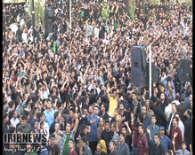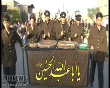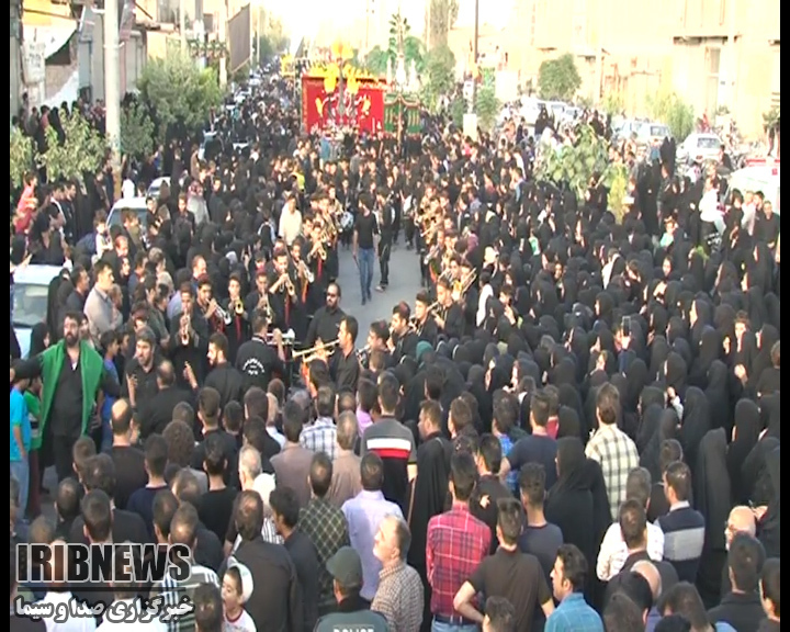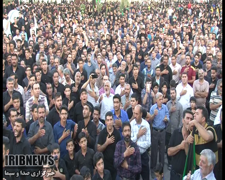 در این آیین هیات های مذهبی، قافله های ندای محرم و دسته های عزاداری با طی خیابان های شهر در میدان امام رضا(ع) اجتماع کرده و پرچم عزای سیدالشهدا را در این میدان برافراشتند.