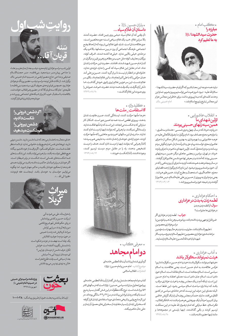 شمارههای این ویژهنامه هر شب تا پایان مراسم عزاداری محرم، در دسترس مخاطبان قرار خواهد گرفت.