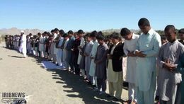 اقامه نماز باران در رودخانه خشکیده کاجو