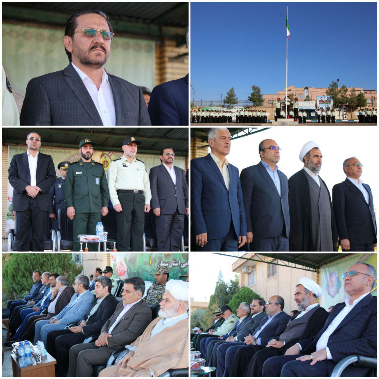 به گزارش خبرگزاری صدا و سیما مرکز سمنان ، این آیین با حضور استاندار ، فرماندهان نیروی انتظامی و سپاه قائم ، نماینده مردم سمنان ، مهدیشهر و سرخه در مجلس و جمعی از مدیران کل دستگاه‌های اجرایی استان سمنان در میدان صبحگاه فرماندهی انتظامی استان سمنان برگزار شد.