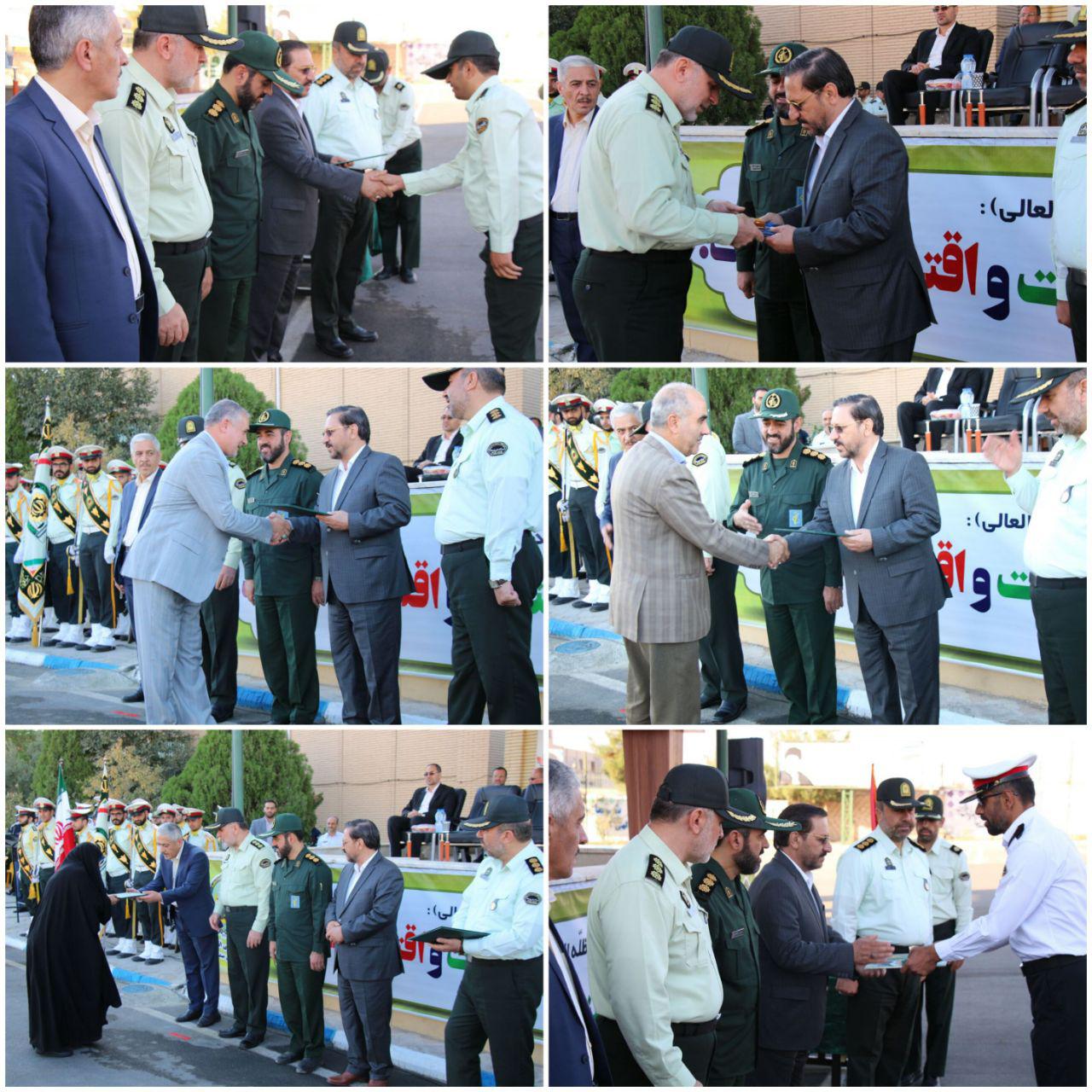 در این مراسم از نیروهای نمونه و پیشکسوتان انتظامی استان تجلیل و حکم ترفیع درجه برخی از پرسنل نیروی انتظامی استان به آنها اعطا شد.