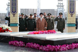 حضرت آیت الله خامنهای در ابتدای ورود به میدان با حضور بر مزار شهیدان و قرائت فاتحه، یاد و خاطره مدافعان فداکار اسلام و میهن را گرامی داشتند.