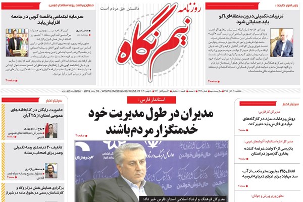 به گزارش خبرگزاری صدا و سیما، مرکز فارس، صفحات نخست روزنامه‌های امروز یک شنبه نوزدهم آبان فارس را ببینید.
