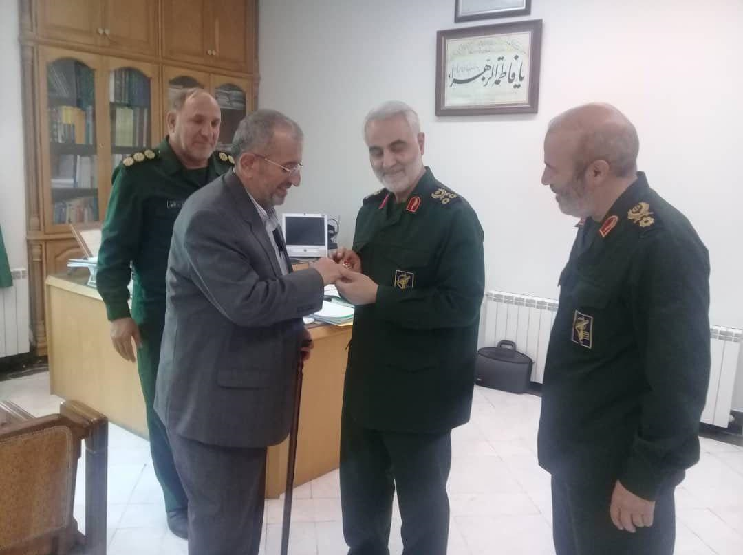 یادگاری شهید سلیمانی بر دست سردار جانباز عظیمی فر+عکس