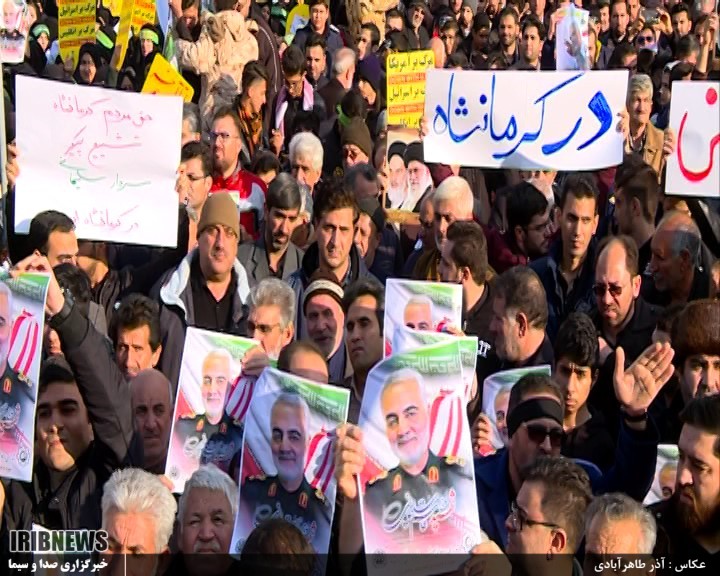 عصر امروز مردم کرمانشاه در حرکتی خودجوش در رسای شهادت سردار رشید اسلام حاج قاسم سلیمانی گرد هم آمدند و به سوگواری پرداختند