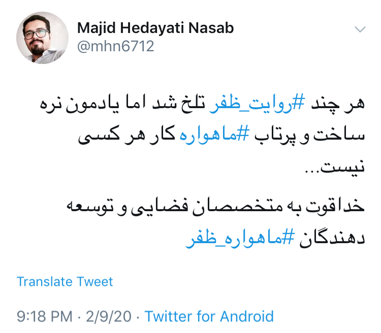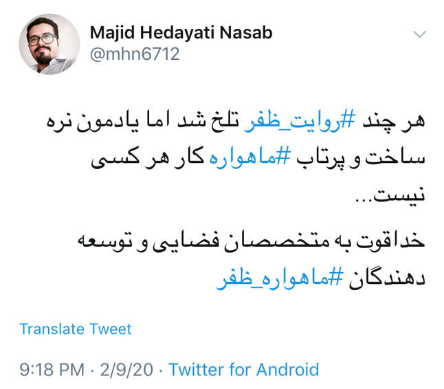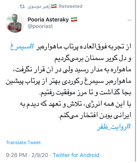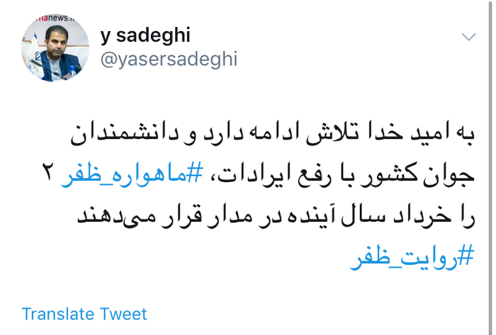 به گزارش گروه فضای مجازی خبرگزاری صدا و سیما، پس از انتشار خبر پرتاب ماهواره ظفر و قرار نگرفتن آن روی مدار به علت نرسیدن به سرعت لازم در صفحه توئیتری آذری جهرمی، کاربران فضای مجازی در پیام‌هایی از زحمات نخبگان صنعت هوا و فضایی کشور  قدردانی کردند.