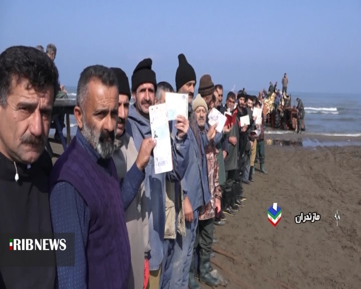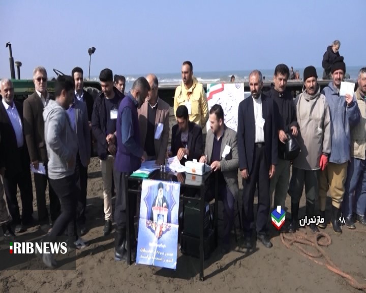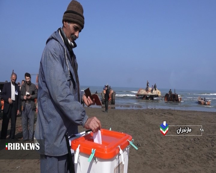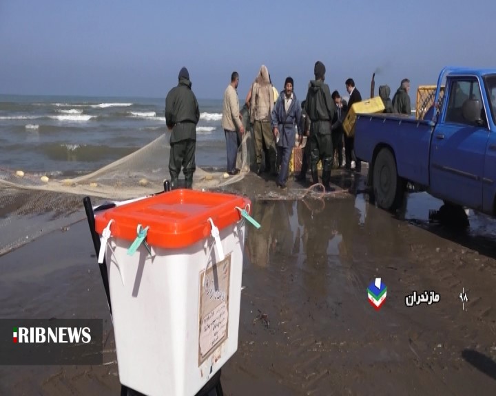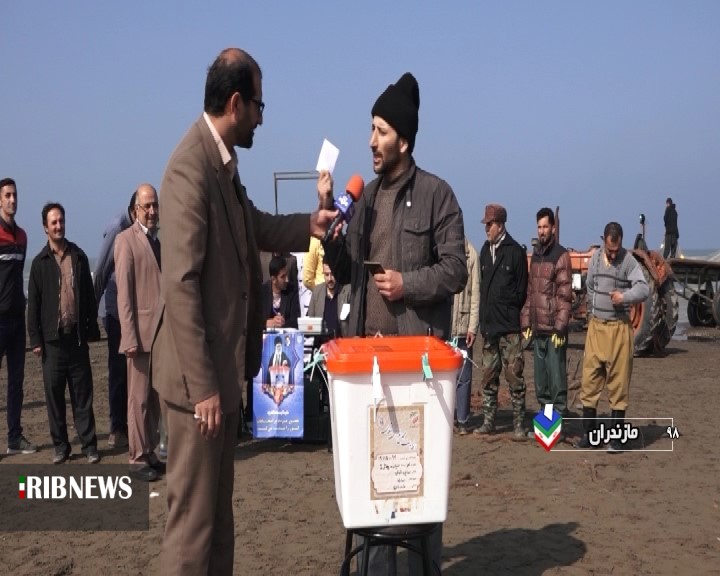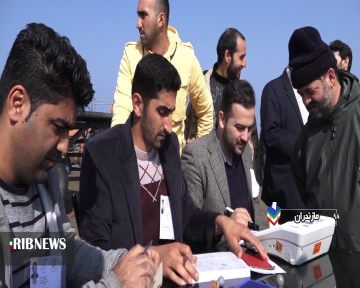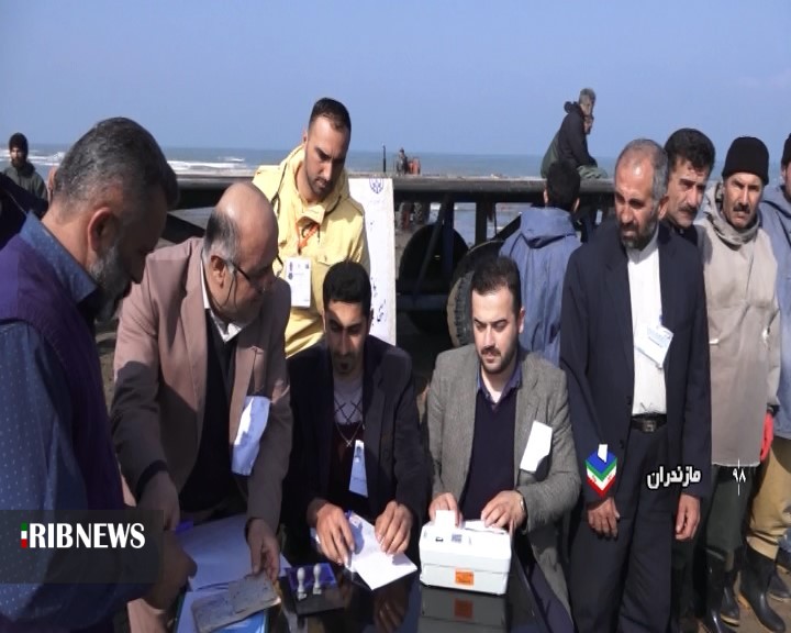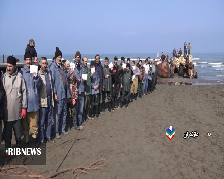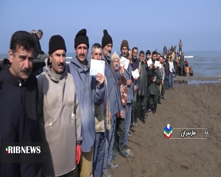حضور صیادان منطقه فرح آباد ساری در پای صندوق رای برای داشتن ایران قوی و با اقتدار