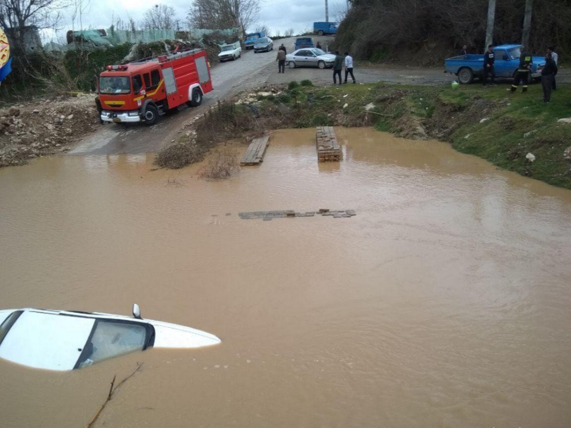 نجات سرنشینان خودروی غرق شده در رودخانه سیاهرود جویبار