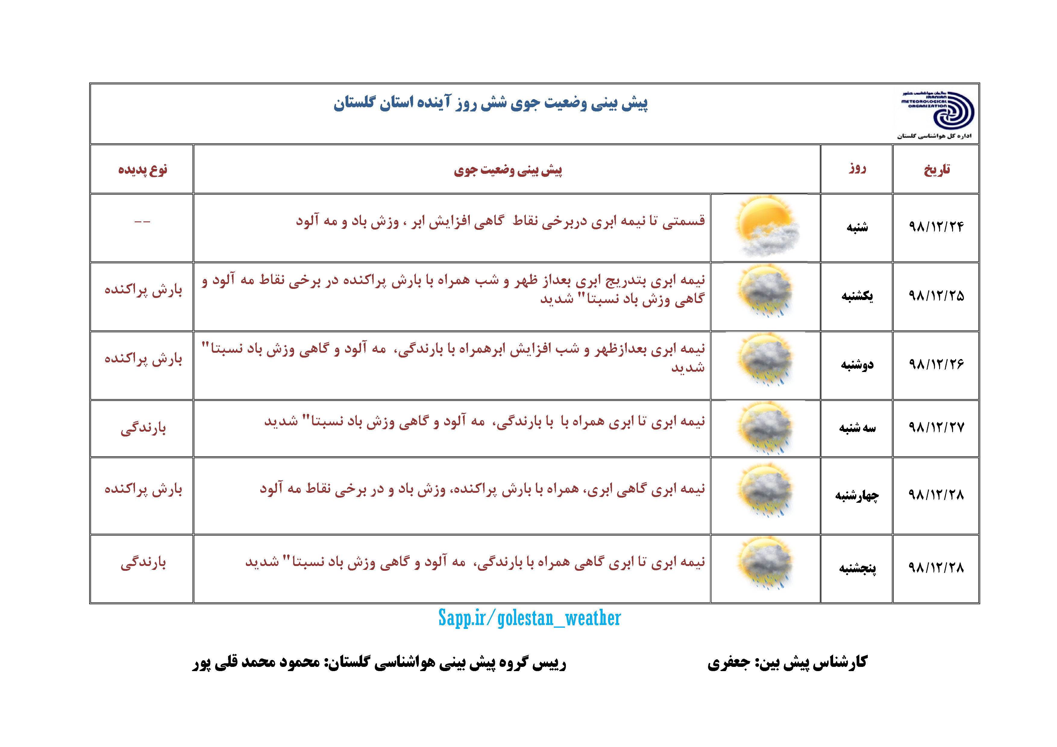 مدیرکل هواشناسی گلستان از ناپایداری هوا و کاهش دمای هوا از یکشنبه در این استان خبر داد.