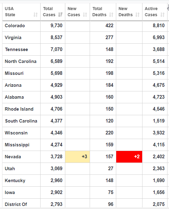 صدها نفر در شهر دنور تجمع کردند و خواستار پایان یافتن قرنطینه کلی در ایالت کلرادو شدند. در حالی که معترضان، خیابانها را با خودروهای خود مسدود کرده بودند، کارکنان بخش درمانی به نشانه اعتراض به افرادی که خواستار اتمام قرنطینه هستند بر سر چهار راهها حضور داشتند.