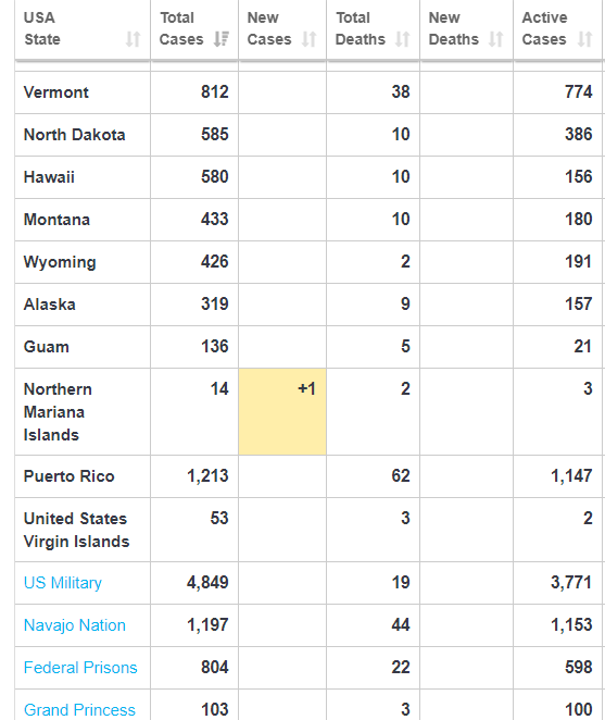 آخرین آمارها از شیوع ویروس کرونا در آمریکا به تفکیک ایالت ها