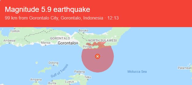 کانون این زمین لرزه در فاصله ۹۷ و نیم کیلومتری جنوب شرقی شهر گورونتالو Gorontalo در سولاوسی شمالی ثبت شده است.