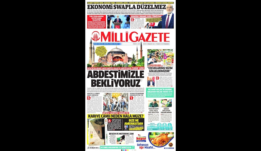 - منتظر مژده درباره ایا صوفیه هستیم، امروز دادگاه عالی درخصوص مسجد شدن یا نشدن ایا صوفیه تصمیم گیری میکند.