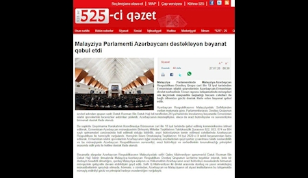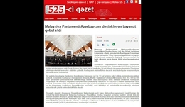 ۵۲۵ جی قزئت:- پارلمان مالزی در حمایت از جمهوری آذربایجان بیانیه صادر کرد.