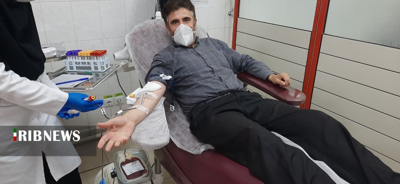 اهدای خون استاندار و جمعی از کارکنان صدا وسیمای مرکز اردبیل بمناسبت هفته انتفال خون