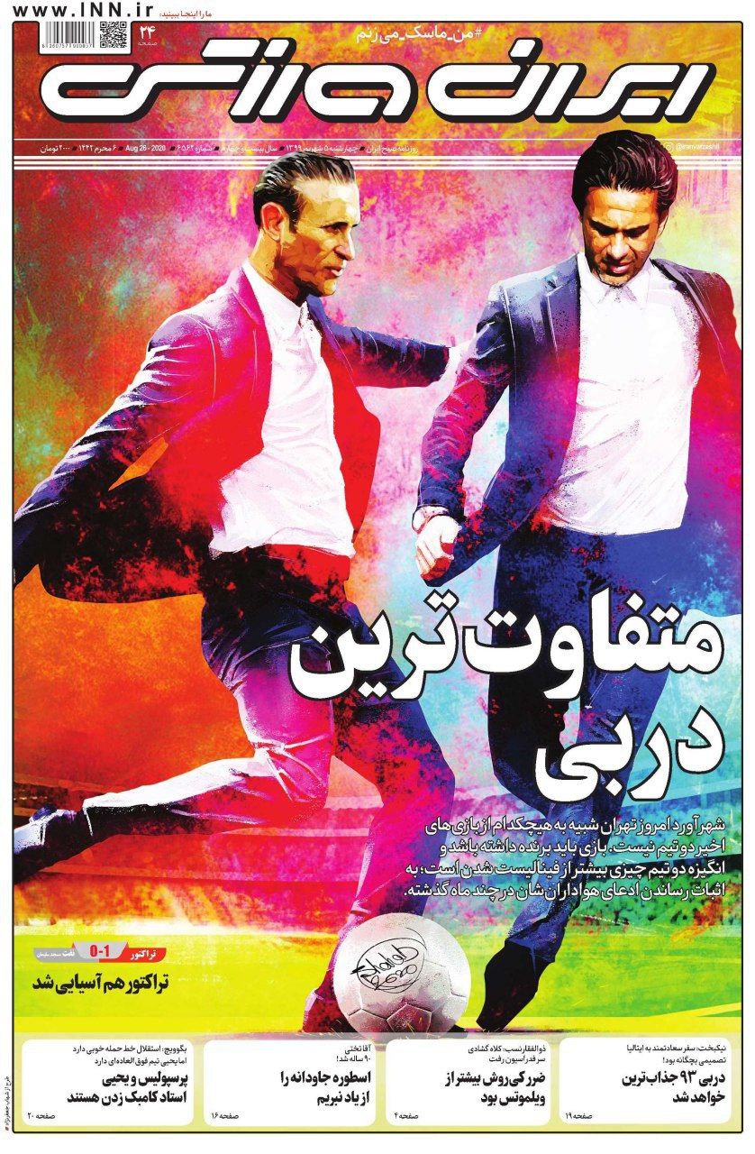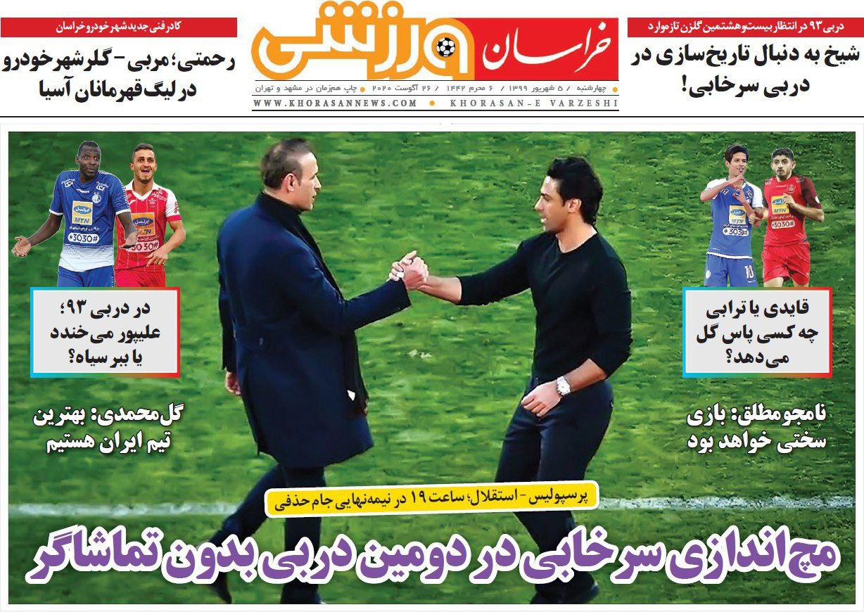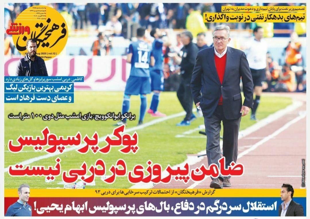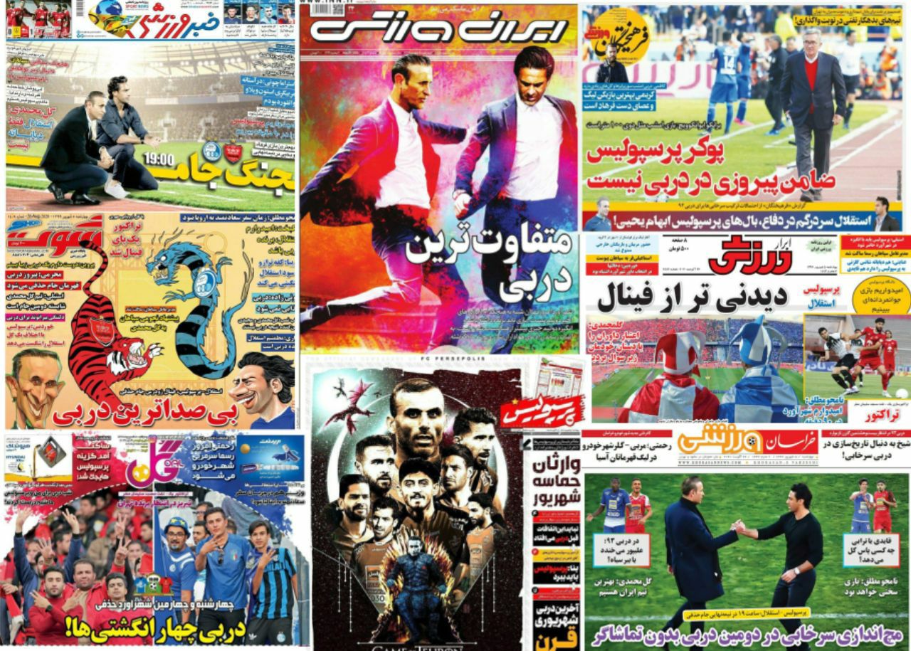 تمام روزنامه های ورزشی امروز نیم صفحه اول خود را به رقابت حساس امشب پرسپولیس و استقلال در نیمه نهایی جام حذفی اختصاص داده اند.