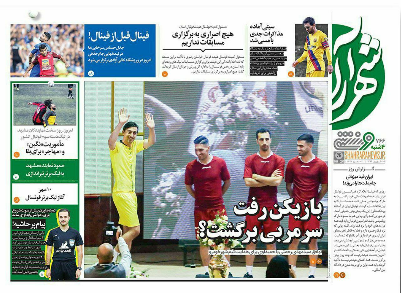 نیم صفحه اول روزنامه های ورزشی امروز؛