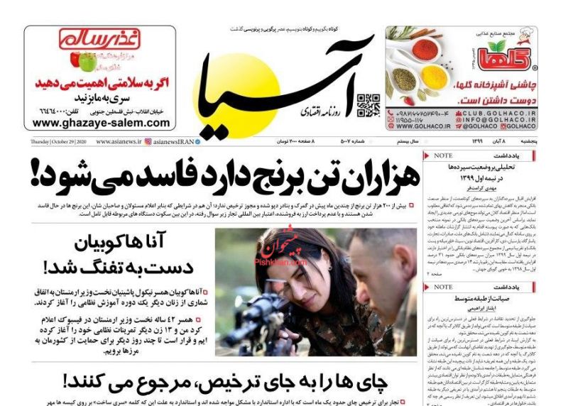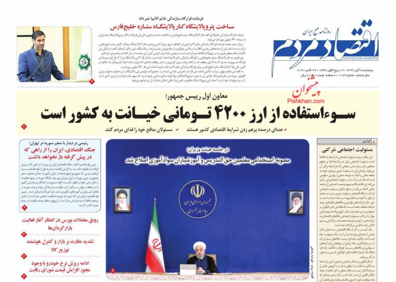 به گزارش گروه اقتصادی خبرگزاری صدا و سیما؛ صفحه نخست برخی روزنامه‌های اقتصادی امروز پنجشنبه، ۸ آبان ۹۹ به شرح زیر است: