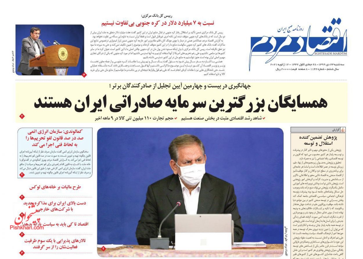 به گزارش گروه اقتصادی خبرگزاری صدا و سیما؛ صفحه نخست برخی روزنامههای اقتصادی امروز سه شنبه ۲۳ دی ۹۹ به شرح زیر است: