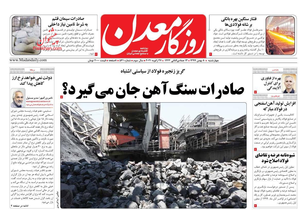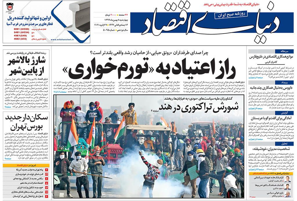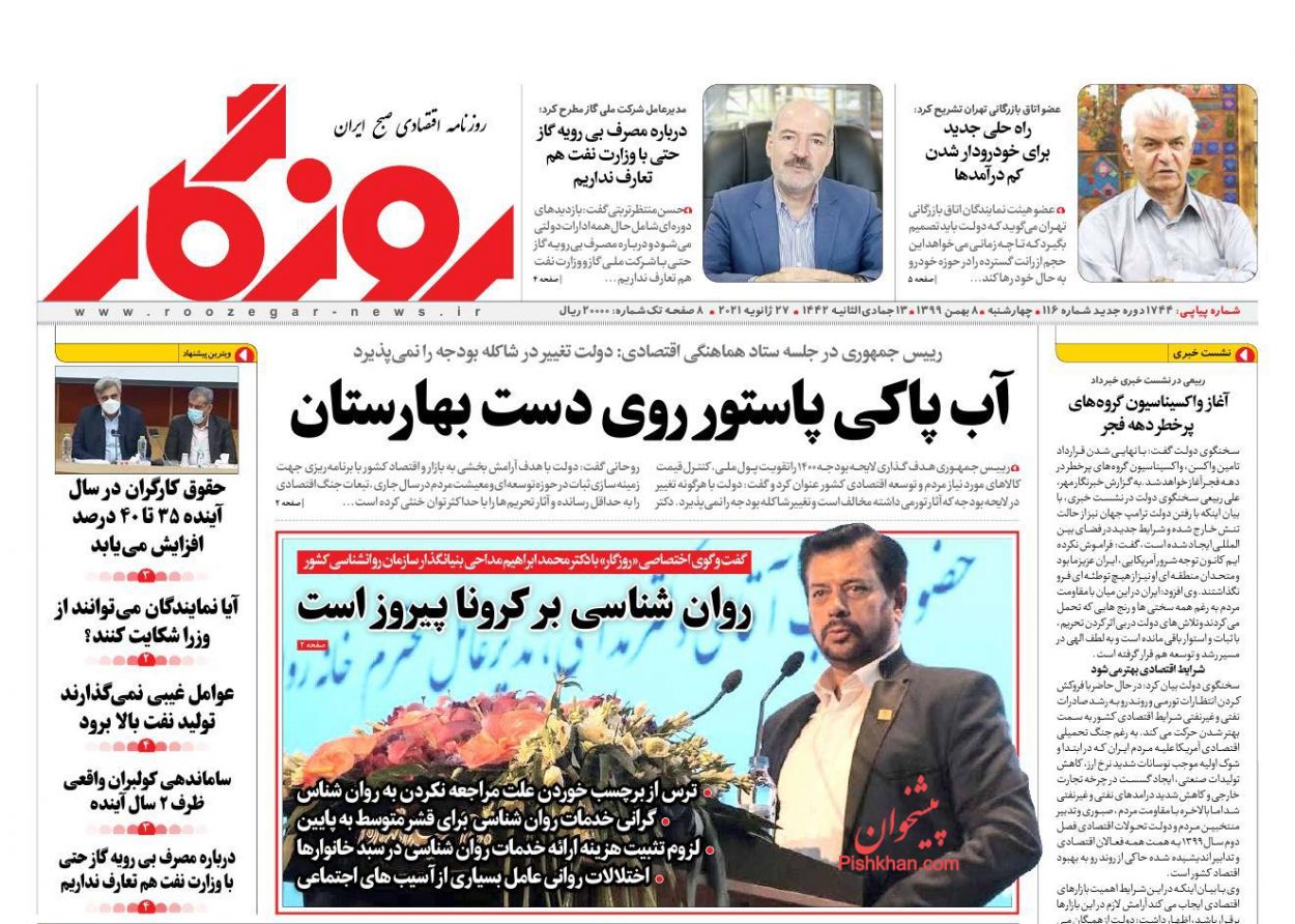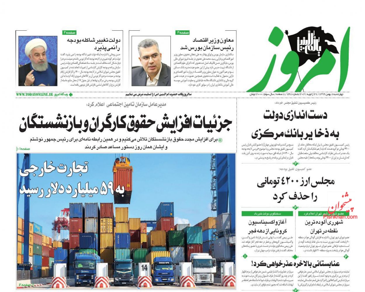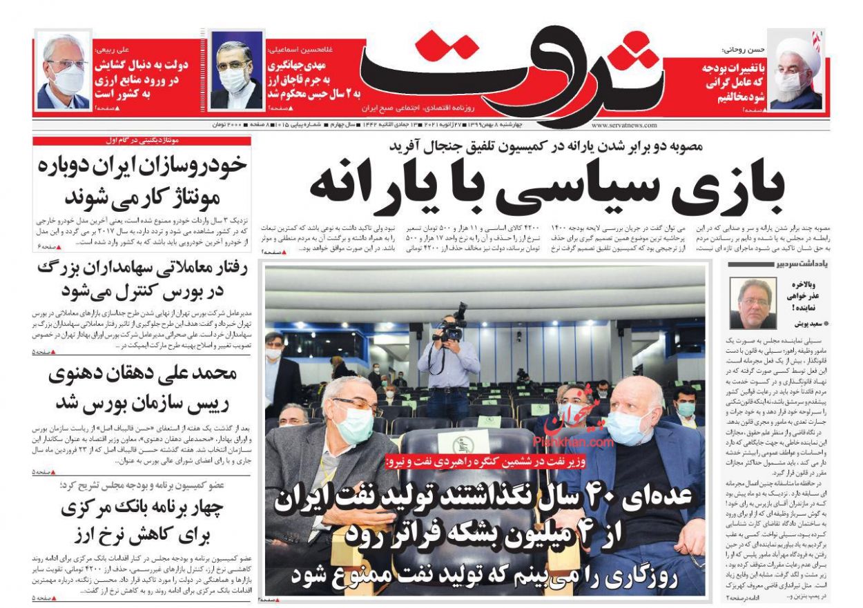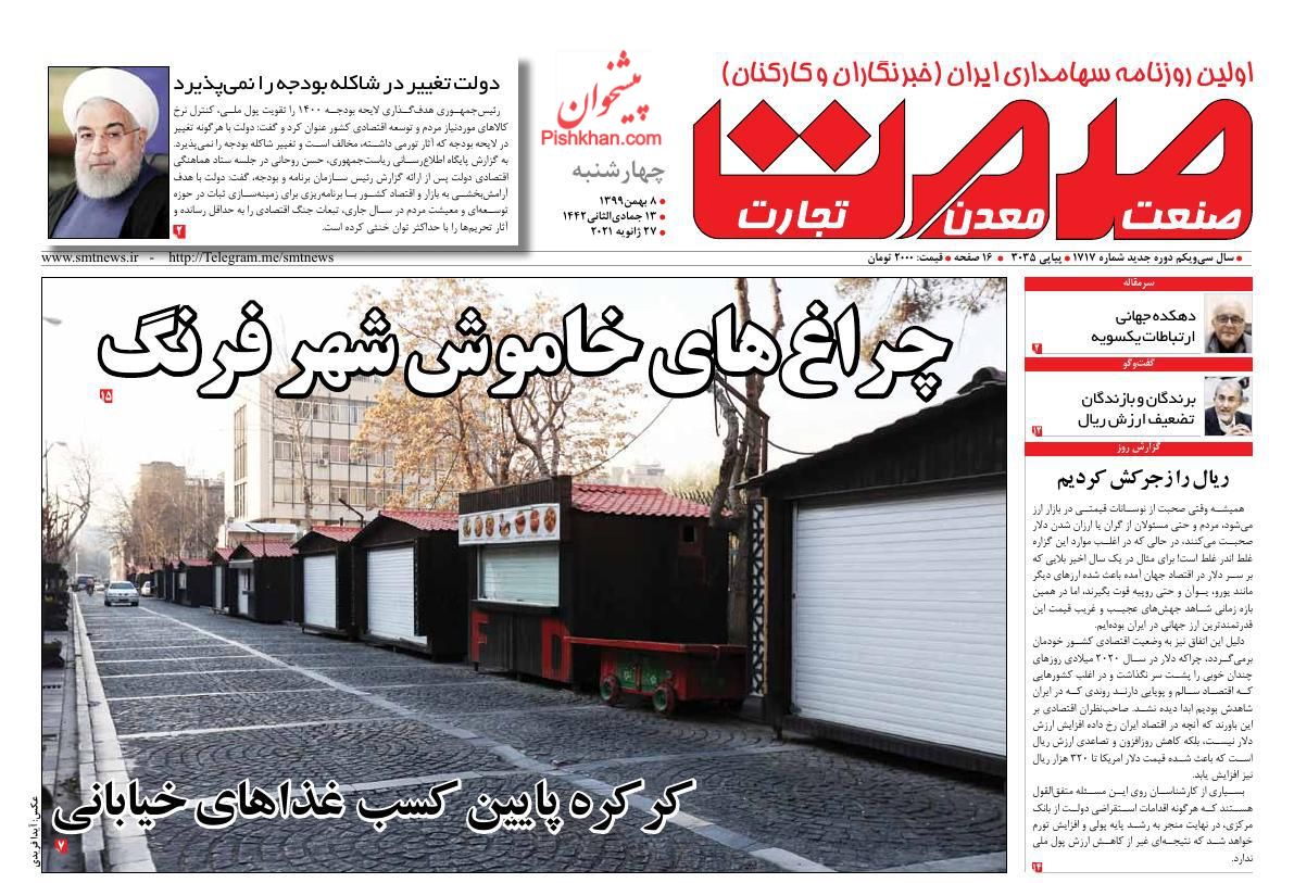 به گزارش گروه اقتصادی خبرگزاری صدا و سیما؛ صفحه نخست برخی روزنامه‌های اقتصادی امروز امروز چهارشنبه ۸ بهمن ۹۹ به شرح زیر است: