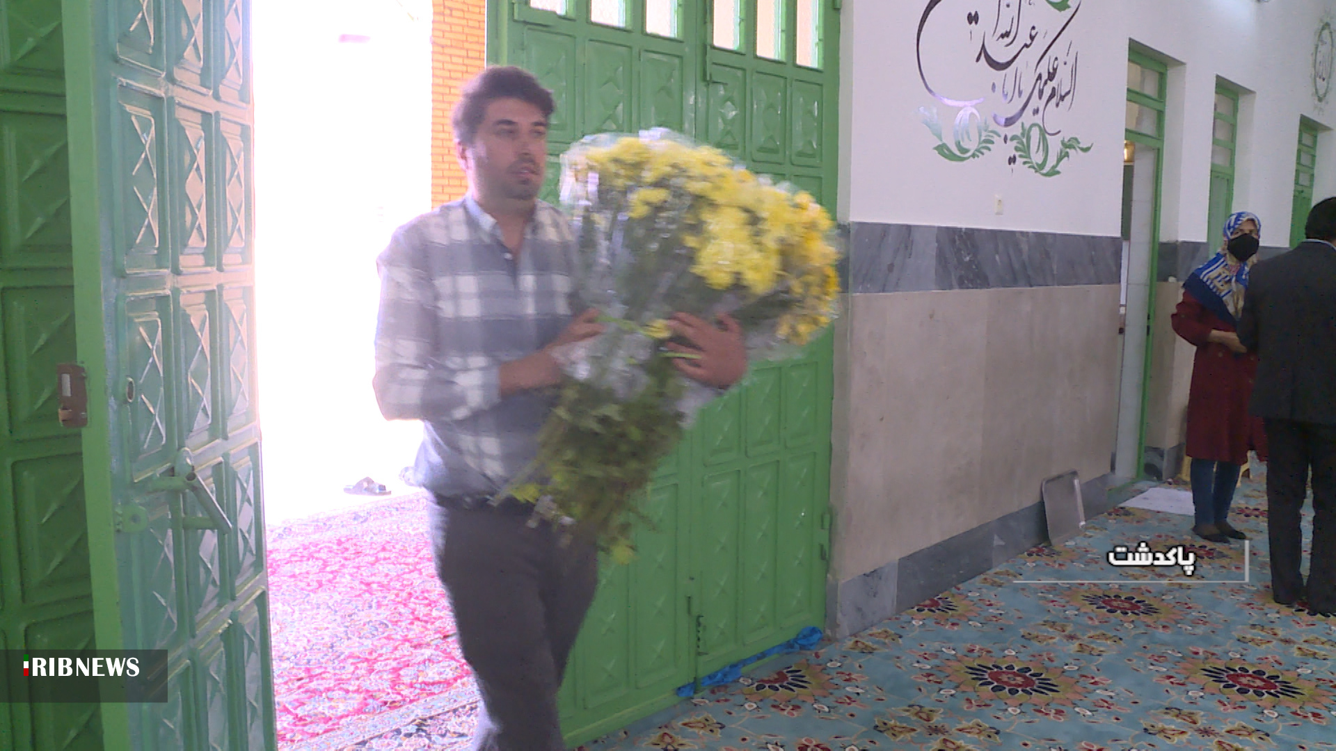 مسجد مقدس جمکران با گل‌های پاکدشت گل ارایی می‌شود