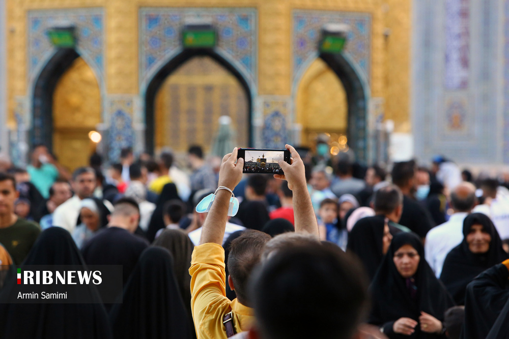 اهتزاز پرچم حرم حضرت علی ابن موسی الرضا (ع) در منطقه ۱۳