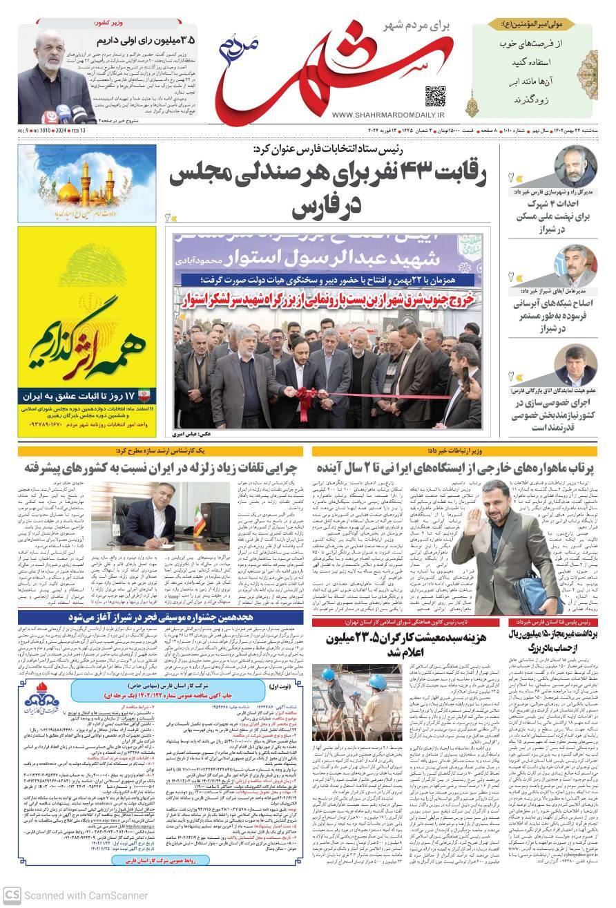 به گزارش خبرگزاری صدا و سیما، مرکز فارس، آنچه روزنامههای فارس ، امروز سه شنبه ۲۴ بهمن به آن پرداخته اند.