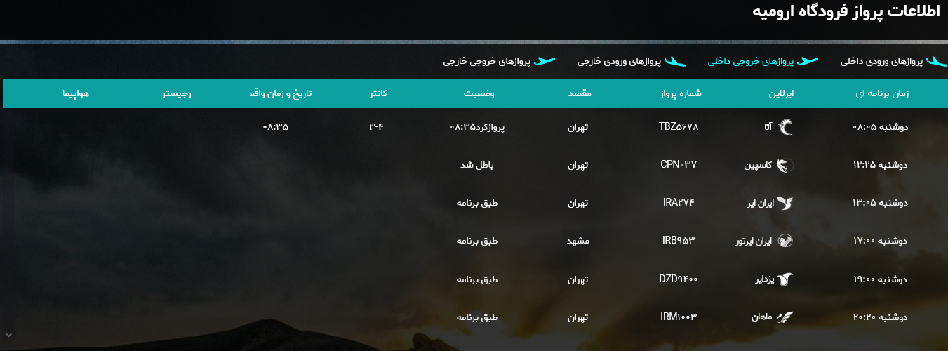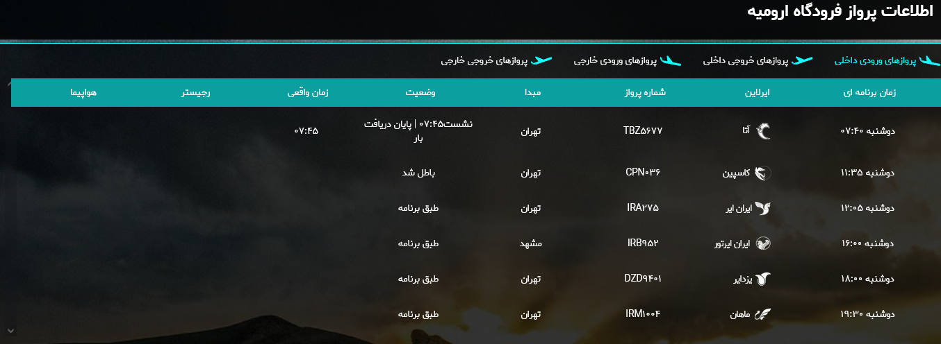 برنامه پرواز‌های فرودگاه بین المللی ارومیه در ۲۹ بهمن