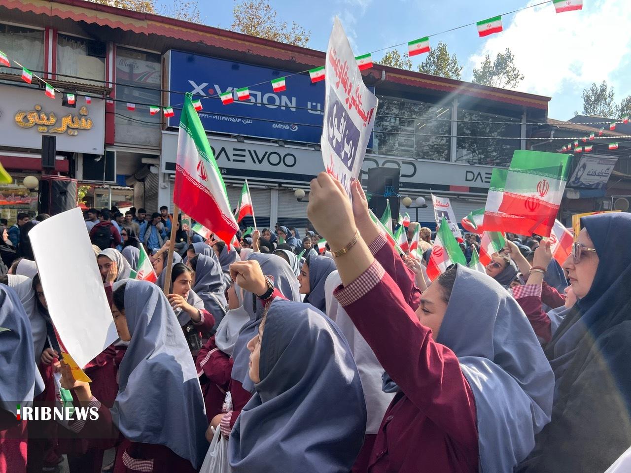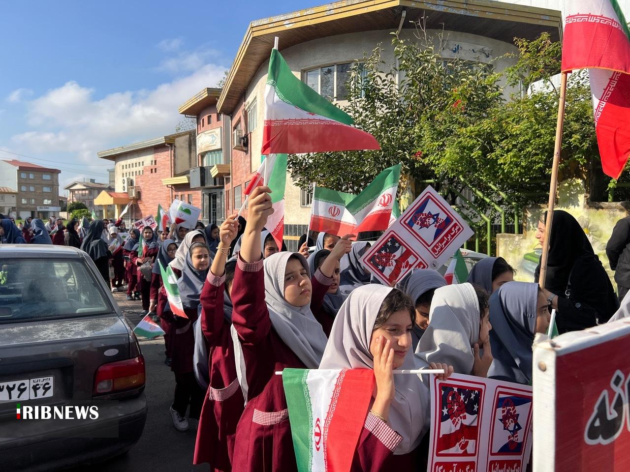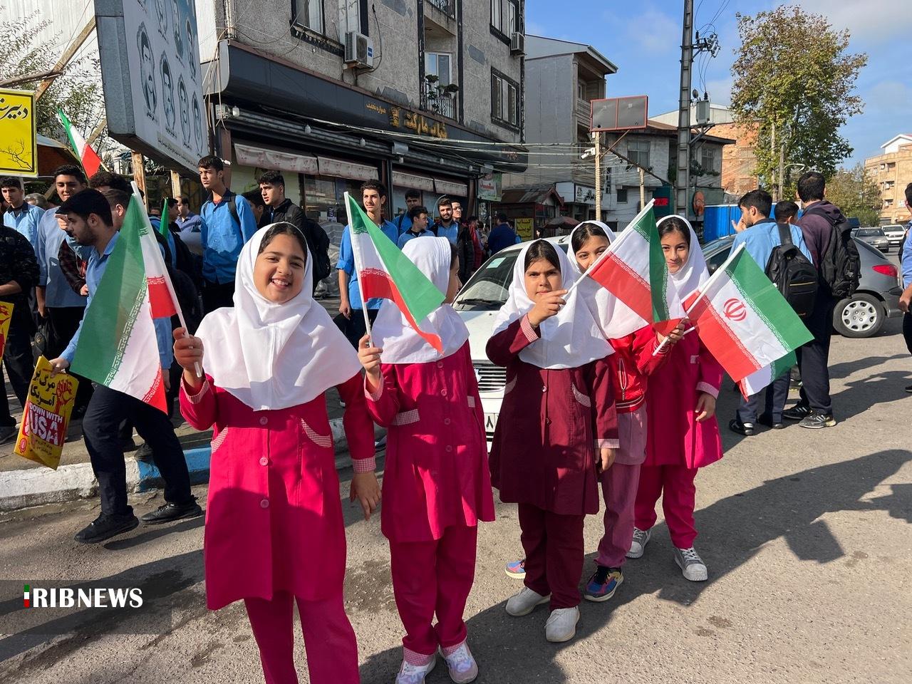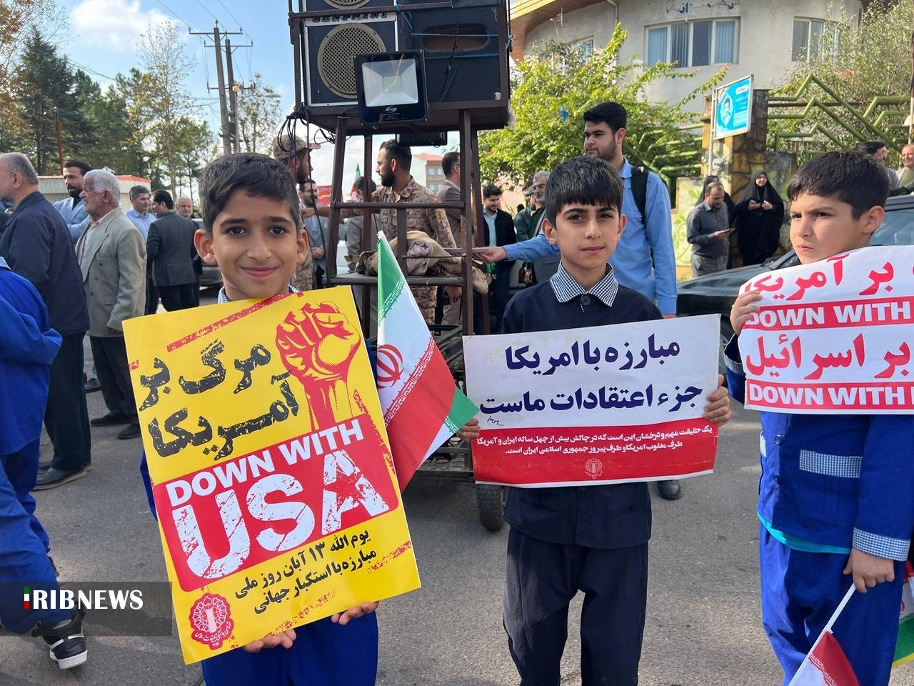 به گزارش خبرگزاری صدا و سیمای گیلان ؛ امروز نسل نوجوان این استان که نه انقلاب را دیده‌اند و نه دوران جنگ را، اما با حضور گسترده و پرشور خود در راهپیمایی ۱۳ آبان نشان دادند همواره همراه و هم پای دیگر هموطنانمان پشت ولایت فقیه هستند و اجازه دست درازی و دخالت استکبار را در هیچ یک از امور کشور نخواهند داد.