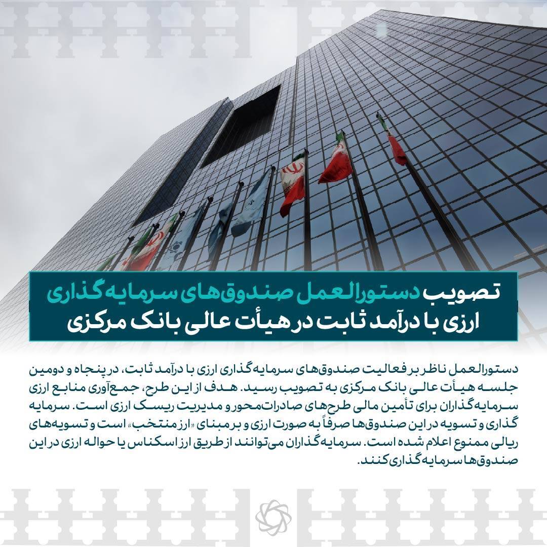 دستورالعمل فعالیت «صندوق‌های سرمایه‌گذاری ارزی با درآمد ثابت» به تصویب هیئت عالی بانک مرکزی رسید.